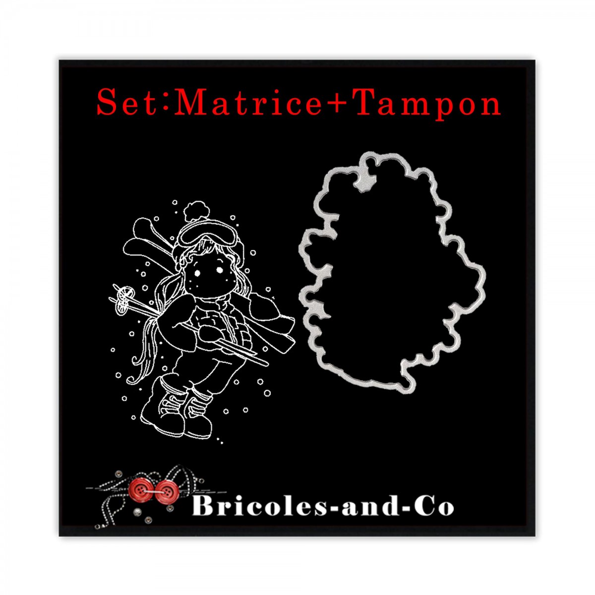 Set : Matrice de découpe et tampon. fille skie. Pour toute vos créations d’hiver.