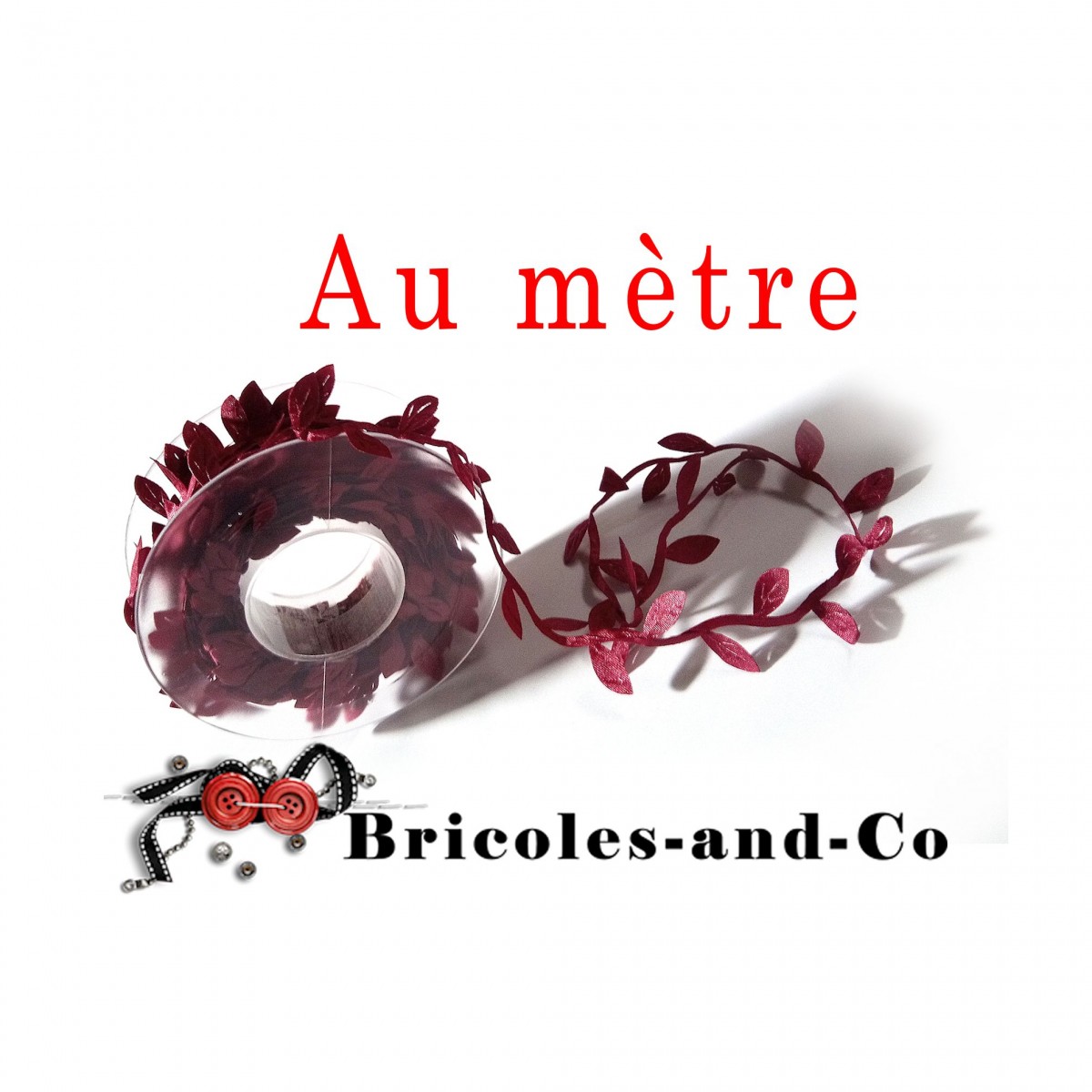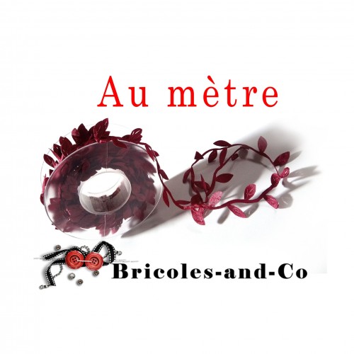 Ruban feuille tissus bordeaux Vendu au mètre linéaire