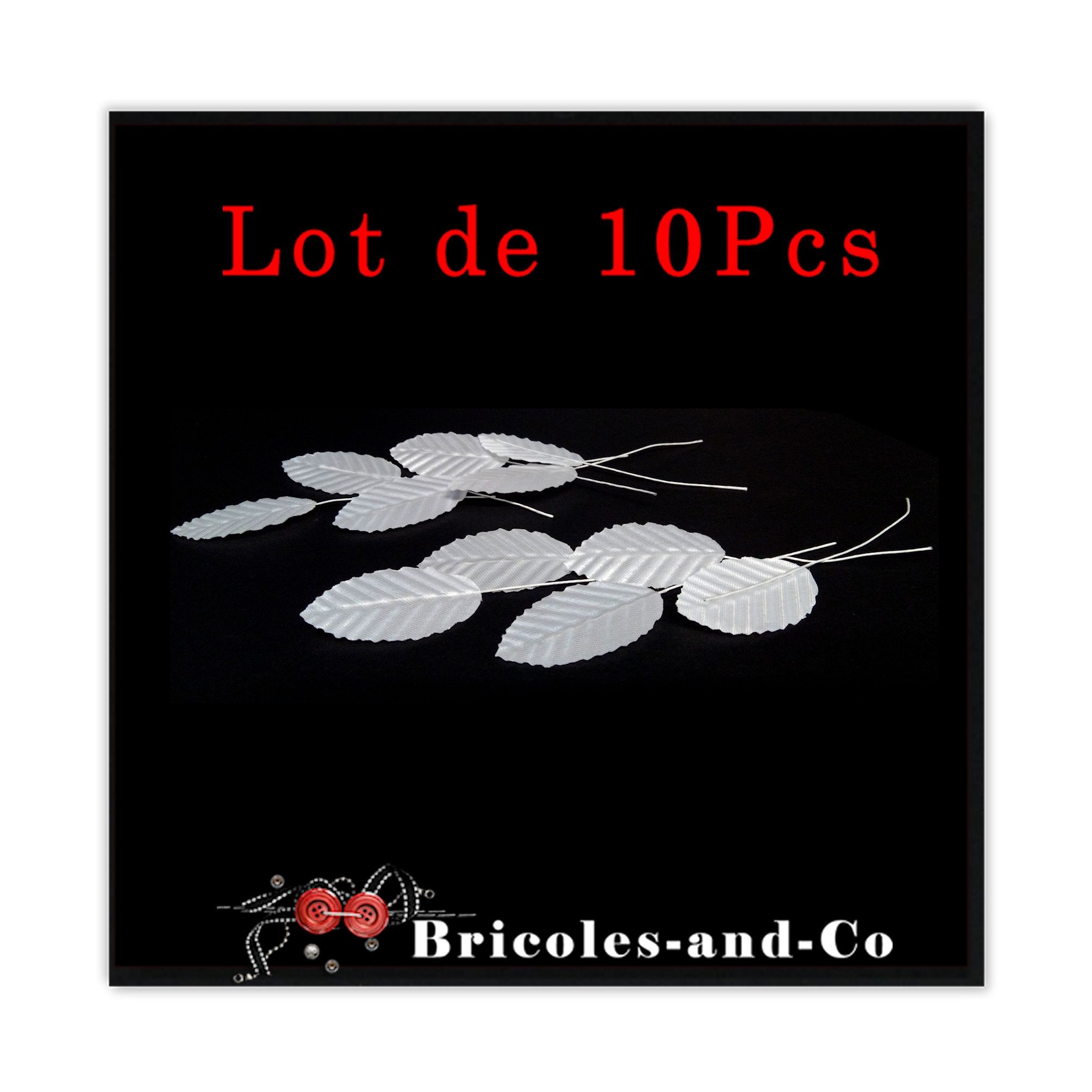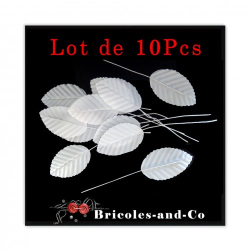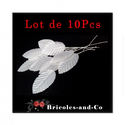 Feuilles blanches artificielles. Taille environ 3cm x5cm, total 11cm. Lot de 10Pcs