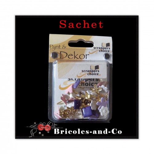 Taille environ : Fleur lilas : 1,2cm Fleur blanche : 1cm Cœur : 1,5cm Carré : 1cm