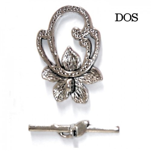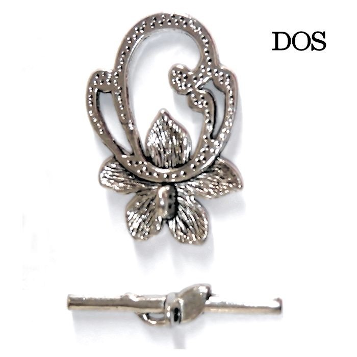 Fermeture Tibétain argenté forme fleur B en 2 parties unitaire