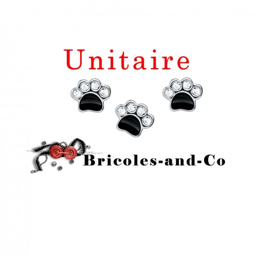 Petit charms patte de chien noire avec strass environ 8 mm pour Pendentif avec vitre.