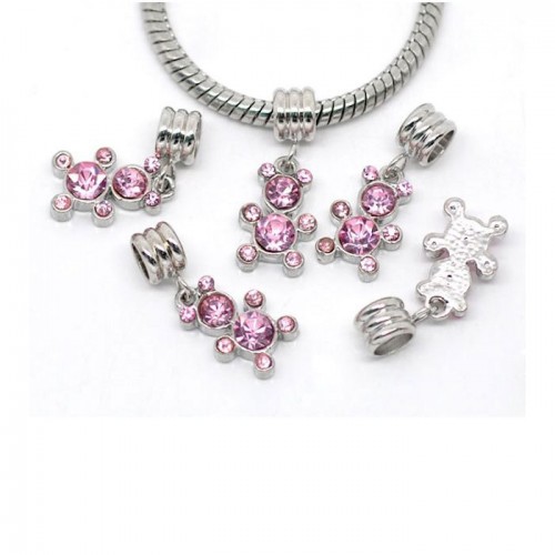 Pendentif charm bracelet en forme d'ourson avec strass et anneau couleur rose. Taille environ 23mmX19mm taille trou 5mm. Idéal pour toutes vos créations de naissance fille, Scrapbooking...