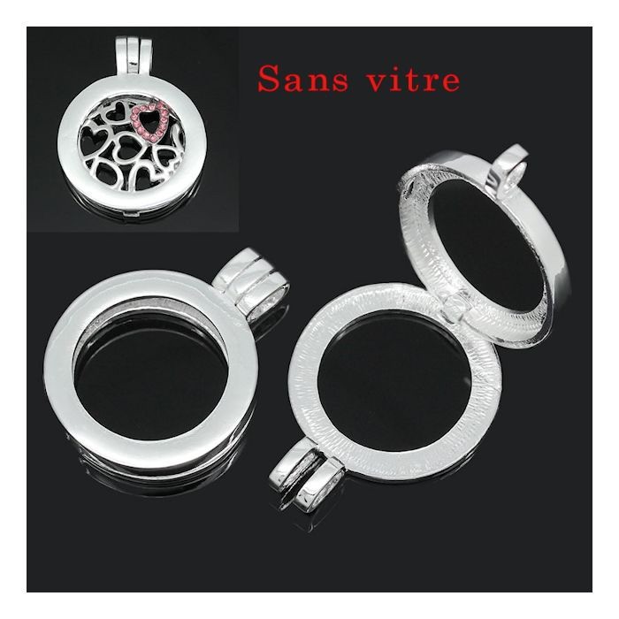 Pendentif rond creux argenté. sans vitre