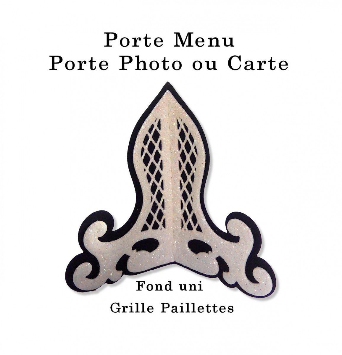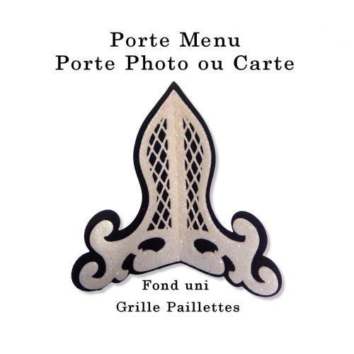 Porte menu, porte carte ou porte photo. Spécial noël : fond noir et grille blanche paillettes. Taille environ : 9,5x11,5cm.