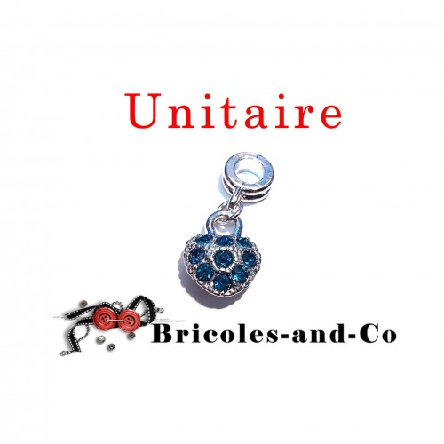 Pendentif Cœur strass bleu modèle C. 26mm anneau intérieure 4mm environ.