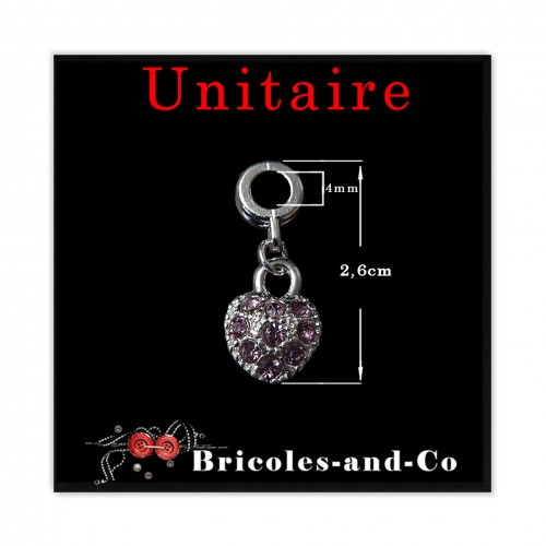 UNITAIRE: Pendentif Cœur strass mauve modèle C. 26mm anneau intérieure 4mm environ.