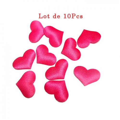 Lot 10Piéces : Coeur pétale, en tissus et mousse, couleur fuchsia de 20x15mm environ
