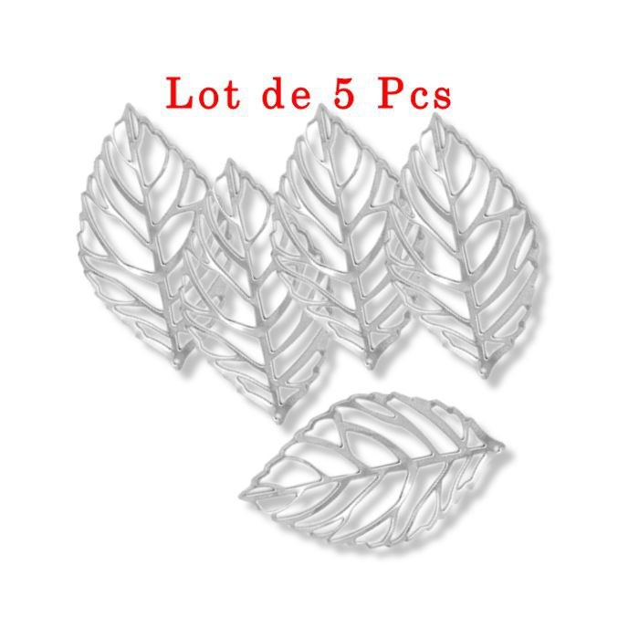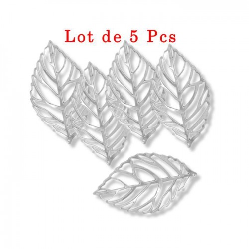Feuille pendentif embellissement filigrane modèle A ton argenté taille environ 5,4cm