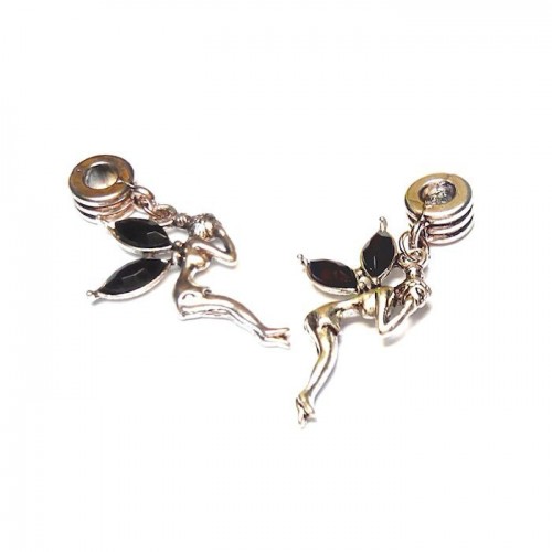 Pendentif, clip représentant une fée couleur argenté design avec des ailes strass noir.
