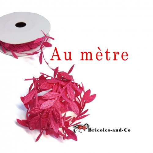Ruban feuille tissus fuchsia Vendu au mètre linéaire