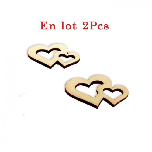 Lot de 2Pcs : Coeurs double Embellissement Scrapbooking .Décoration en bois creux contreplaqué de 2mm . Taille environ40mmx28mm