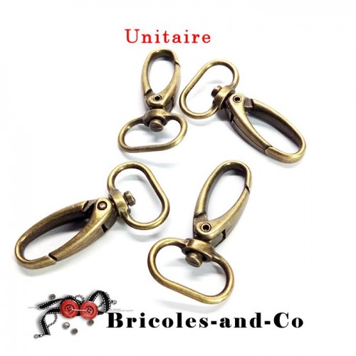 Mousqueton fermoir homard ton bronze taille environ de 4.5cm intérieur anneau 21mm.