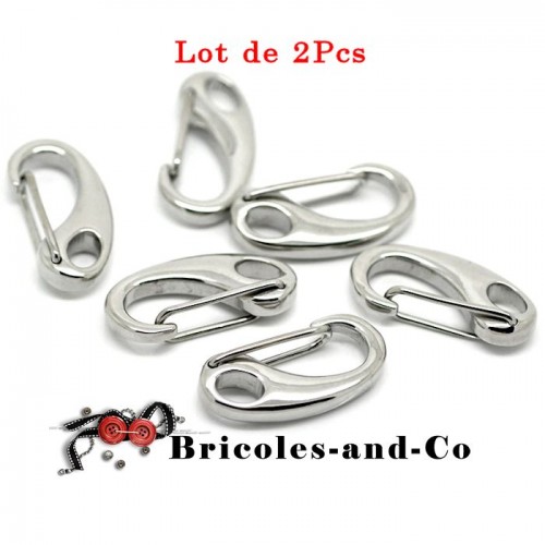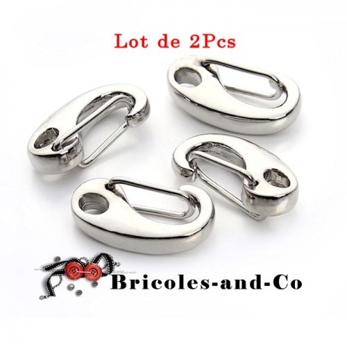 Mousqueton fermoir ton argenté Modèle F taille 2.1cm. En lot 2Pcs