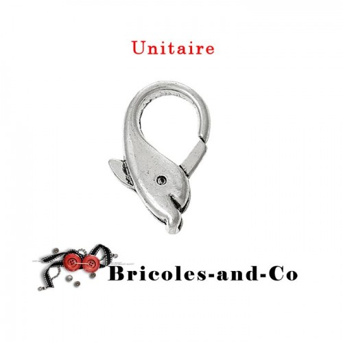 Fermoir homard dauphin ton argenté taille 18mm. Unitaire