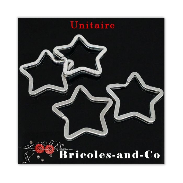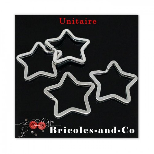 Porte-clés anneau étoile argenté taille 33mm . Unitaire