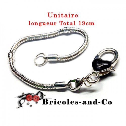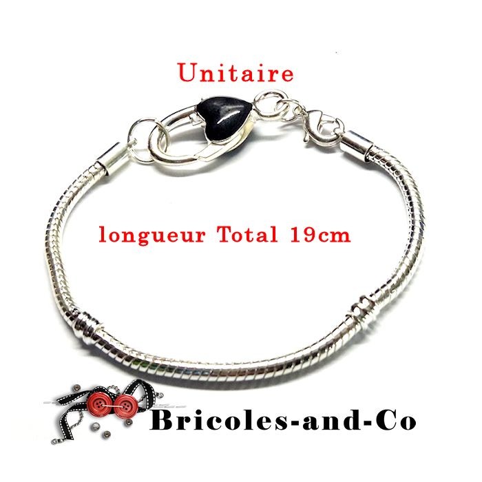 Bracelet chaine serpent cœur argenté Modèle C. Taille longueur total 19cm. Mousqueton homard cœur noir 27mm. Accessoire base pour vos créations : bijoux, bracelet.