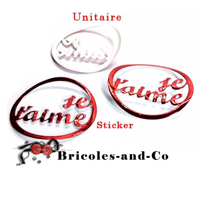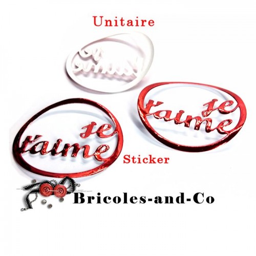 Découpe je t’aime texte rond sticker rouge brillant .Diamètre 6.3cm