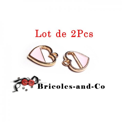 Pendentif cœur rose et doré. Taille 1,6cm X1.5cm. Accessoire base pour vos créations : bijoux, bracelet, bijoux de sac, décoration planner …