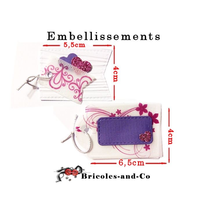 - 1 étiquette Bisous : 12,5cm de long x2,5cm