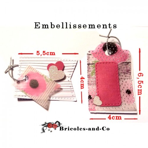 - 1 étiquette Bisous : 12,5cm de long x2,5cm