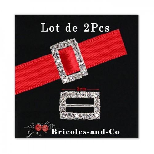 Lot de 2Pcs : Boucle rectangle strass taille environ 2cm x 1,8cm
