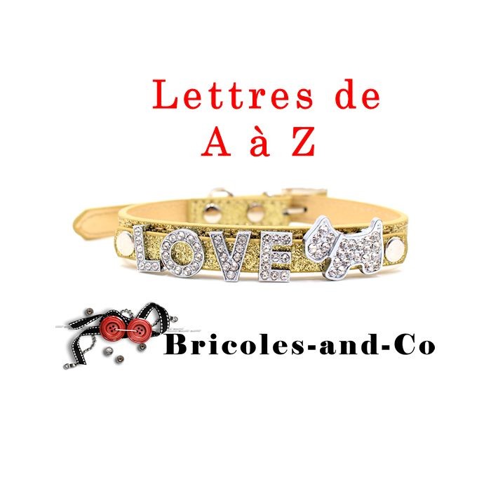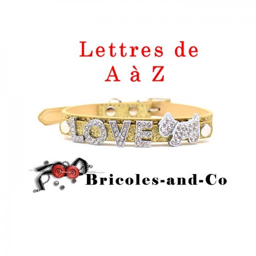 Lot : Perle lettre alphabet 1,2cm environ , avec strass , curseur perle passe ruban ou bracelet 8mm, une note chic sur tous vos accessoires déco