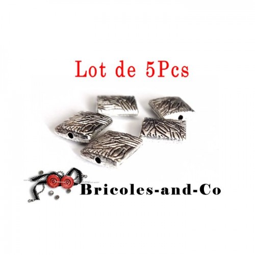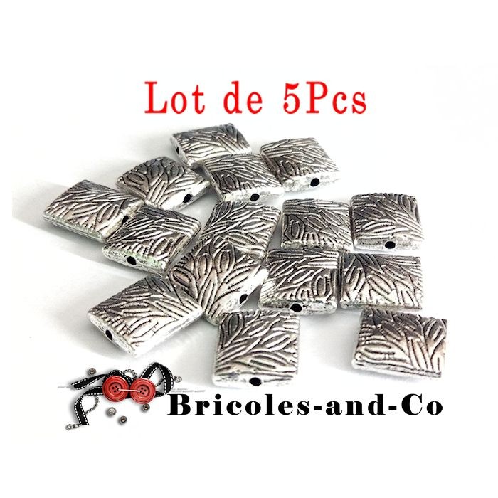 Lot de 5Pcs : Perle spacer, intercalaire perle, perle argenté, motif feuille sculpté .