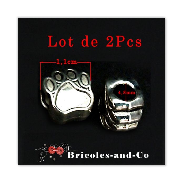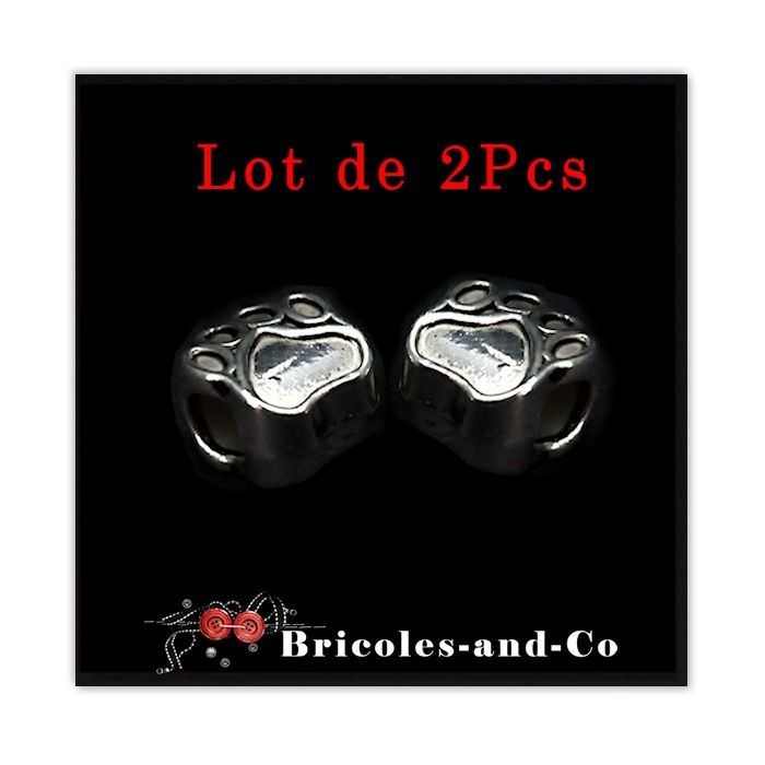 Lot de 2Pcs : Perle patte animal, A argenté,
