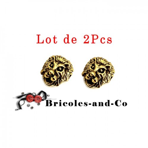 Lot de 2Pcs : Perle lion, tête animal, doré,