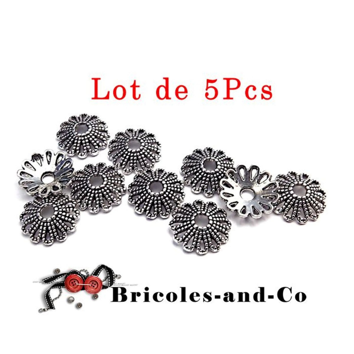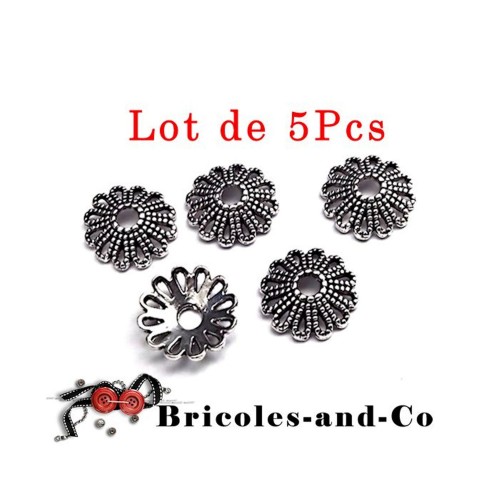 Lot de 5Pcs : Perle, coupelle, caps B fleur