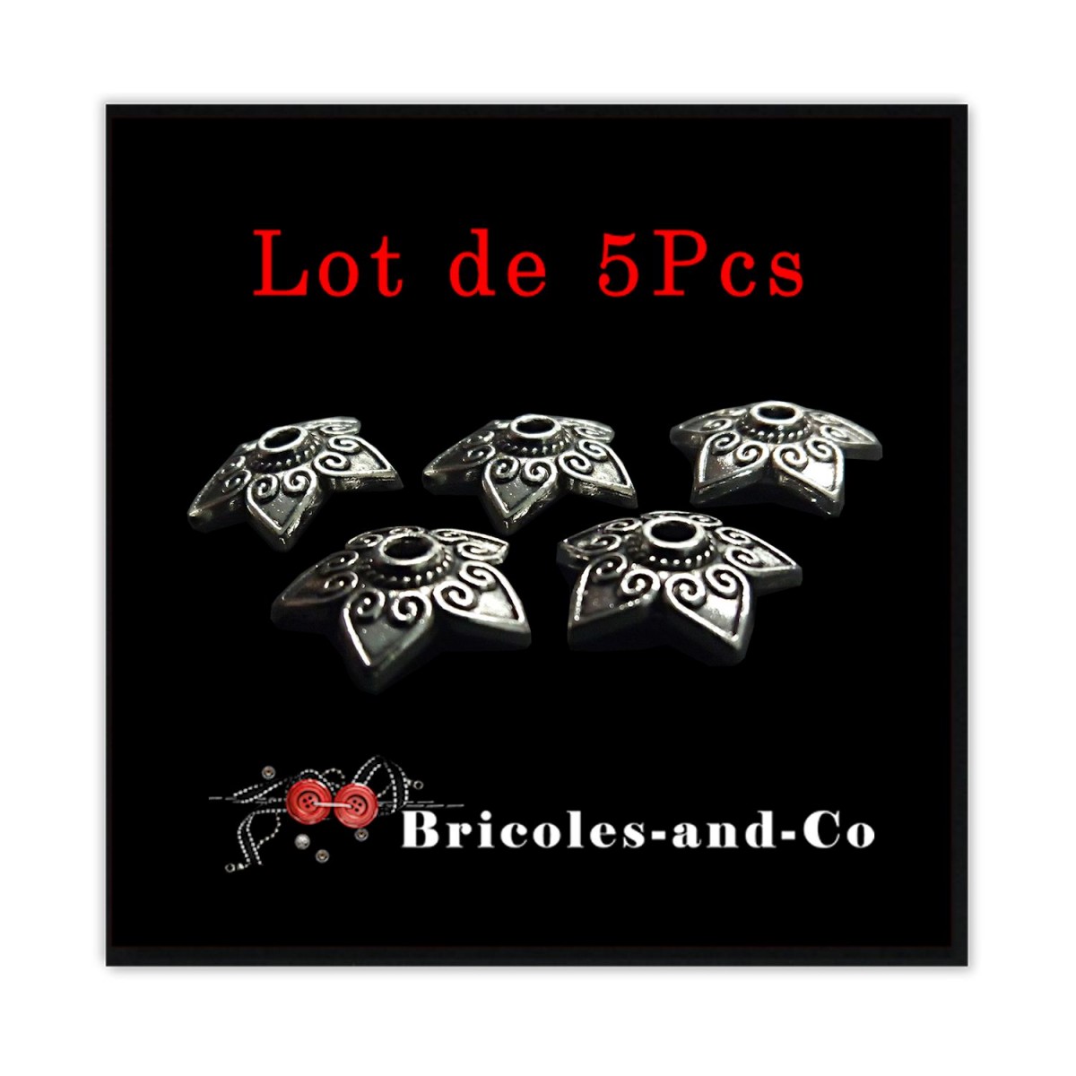 Lot de 5Pcs : Perle, coupelle, caps A fleur