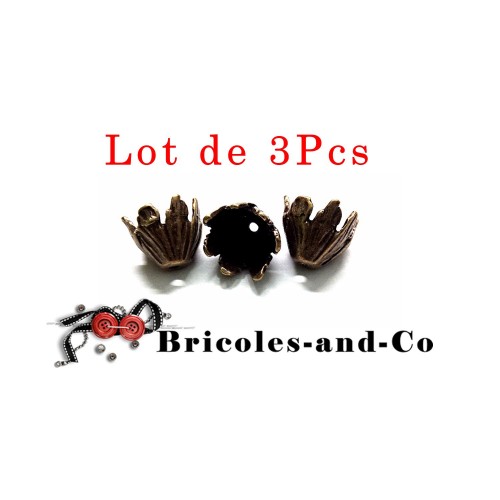Lot de 3Pcs : Perle, coupelle fleur, bronze D,