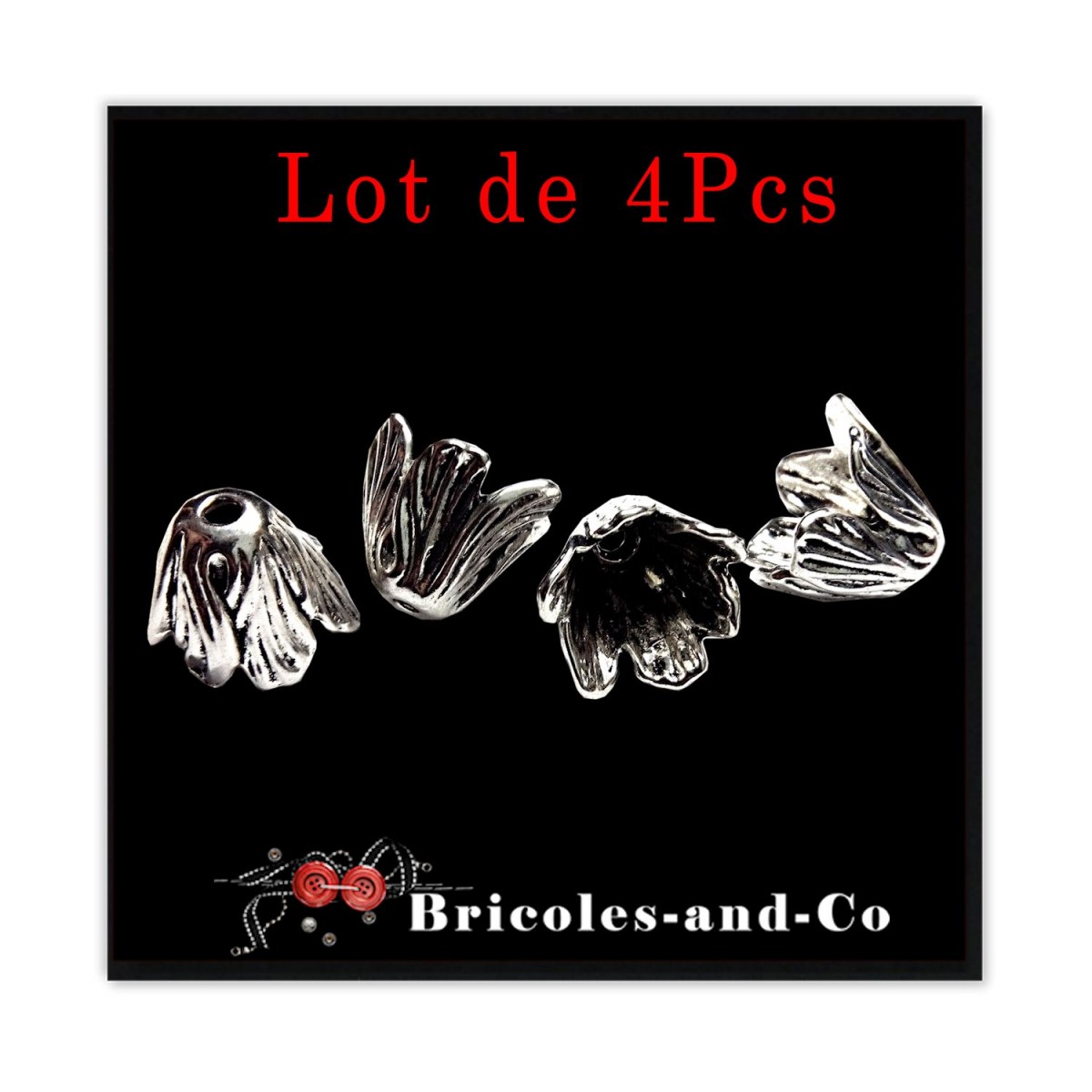 Lot de 4Pcs : Perle, coupelle, caps F fleur