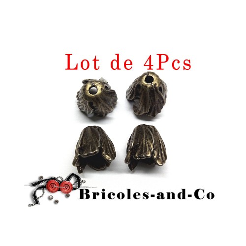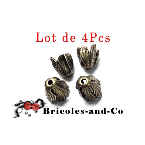 Lot de 4Pcs : Perle, coupelle, caps F fleur