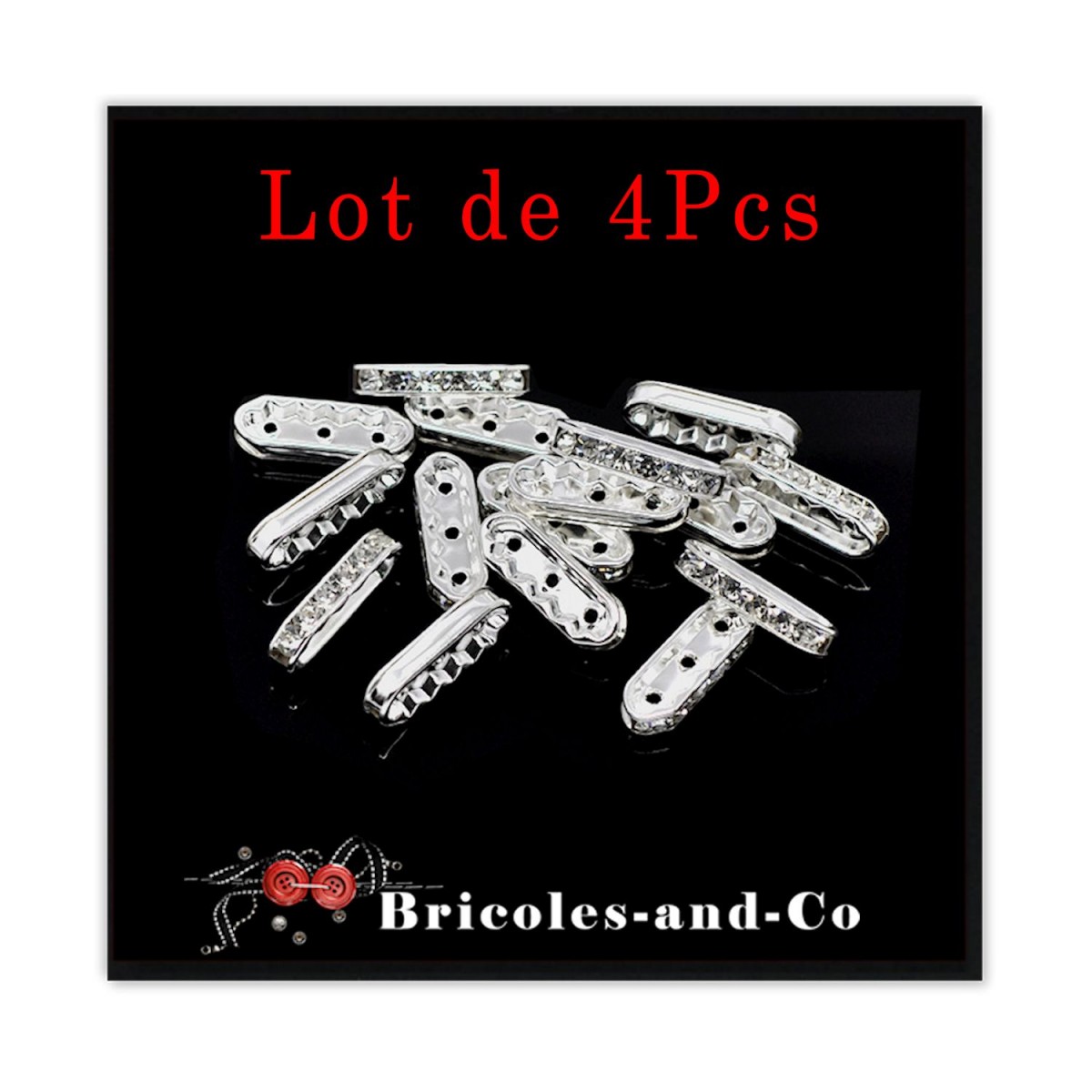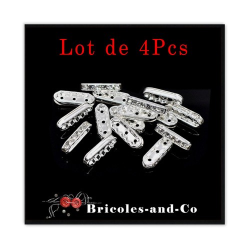 Lot de 4Pcs : Perle, spacer, barre strass argenté,