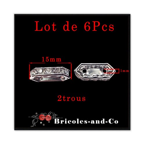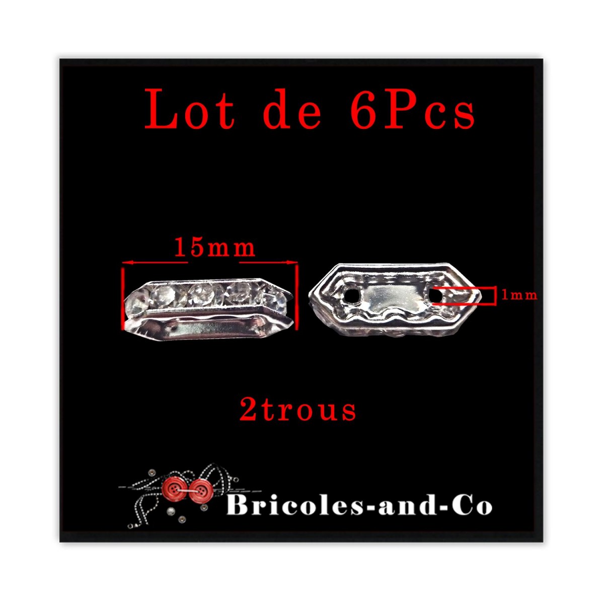Lot de 6Pcs : Perle, spacer, barre strass argenté,