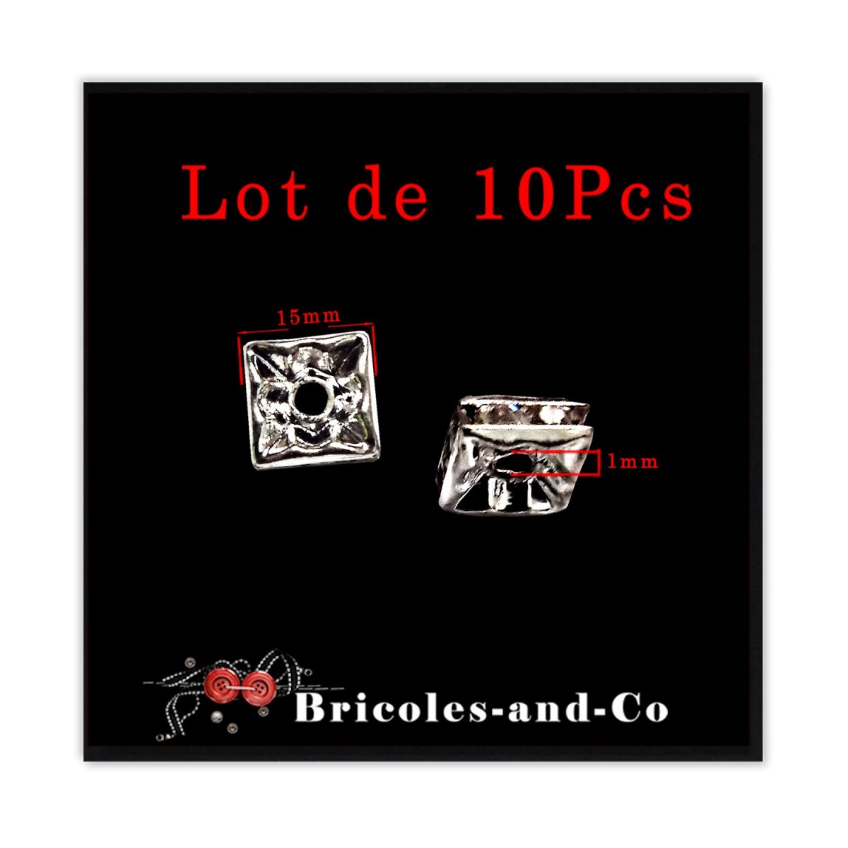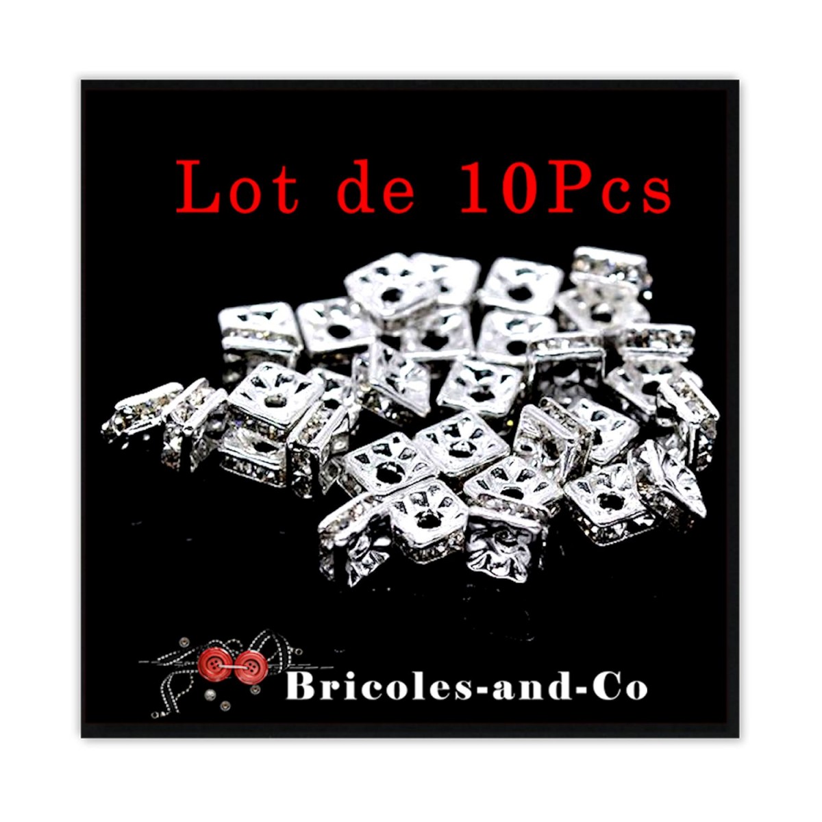 Lot de 10Pcs : Perle, spacer, carré strass argenté,