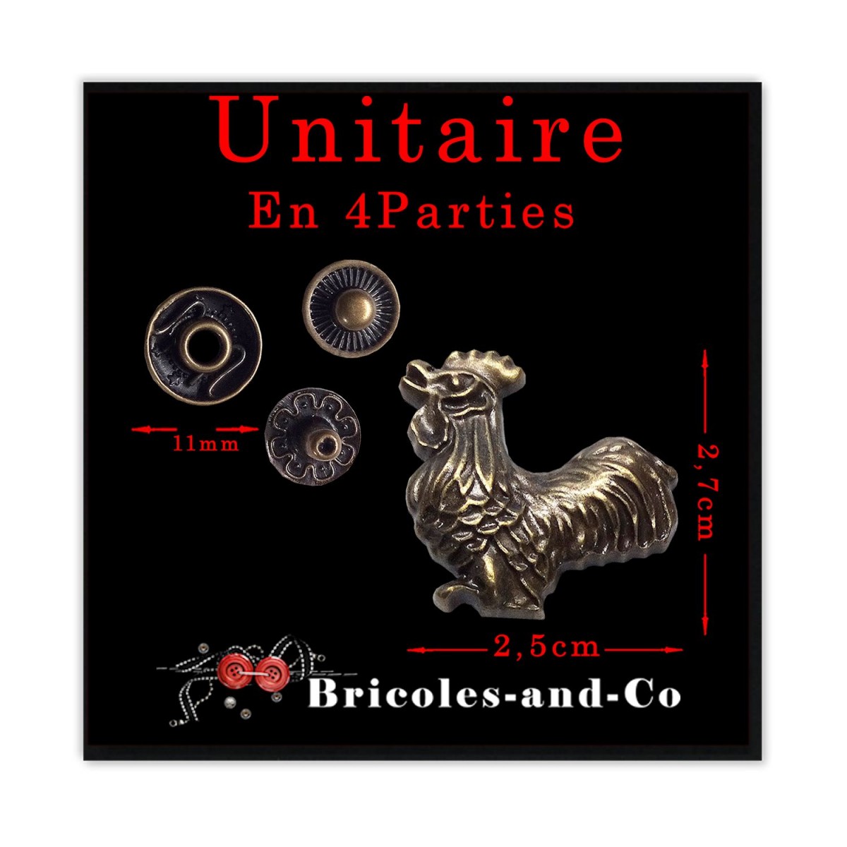 Unitaire en 4 parties : Rivet, coq, bronze,