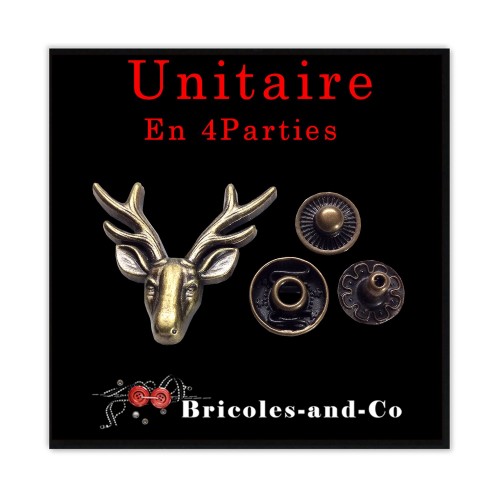 Unitaire en 4 parties : Rivet, tête de renne, bronze,