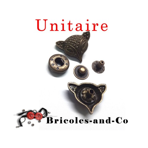 Unitaire en 4 parties : Rivet, tête de renard, bronze,