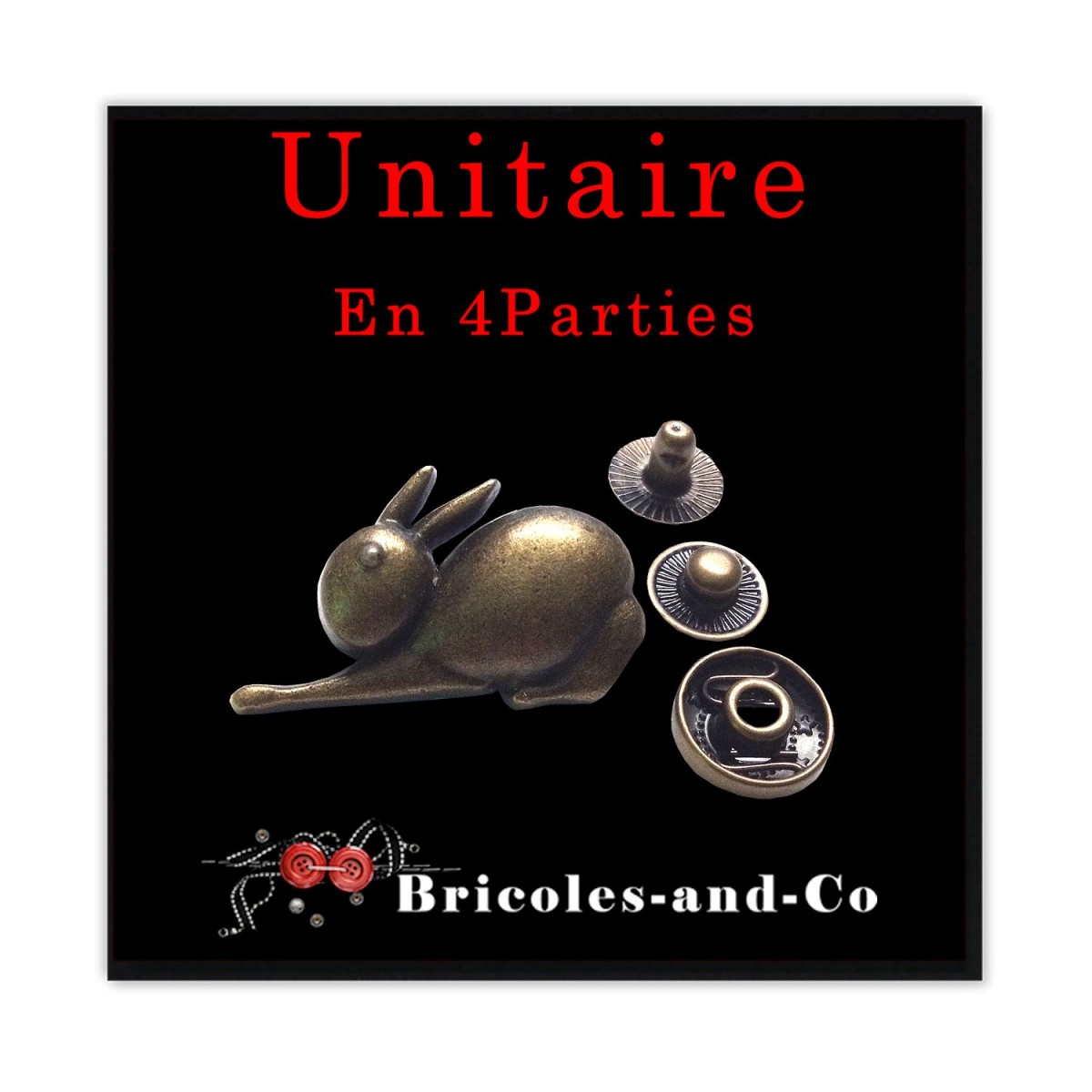 Unitaire en 4 parties : Rivet, lapin allongé , bronze,