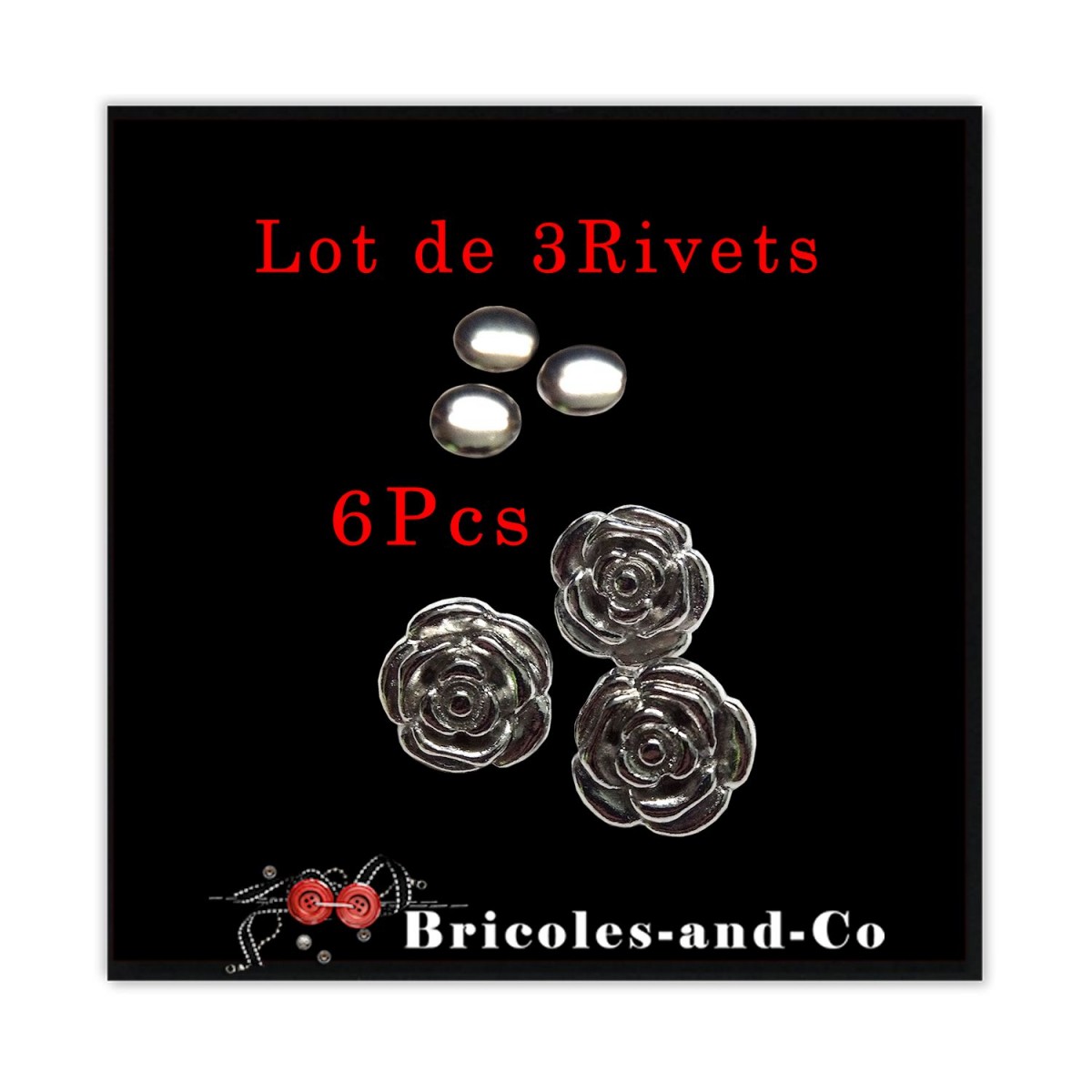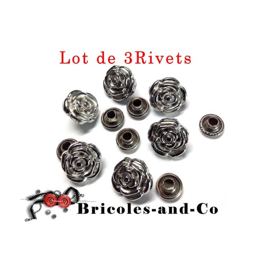 Lot de 3 rivets bouton-pression fleur, rose argenté. 6 Pcs.