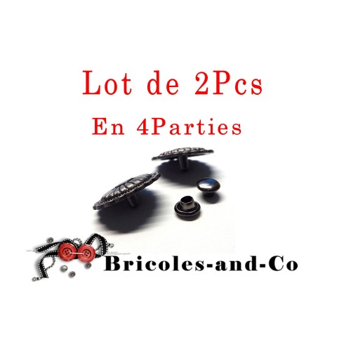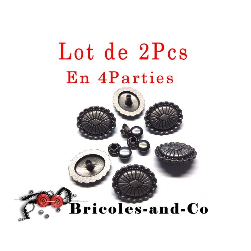 Lot de 2 rivets, bouton-pression ovale fleur vintage, en 4 parties.