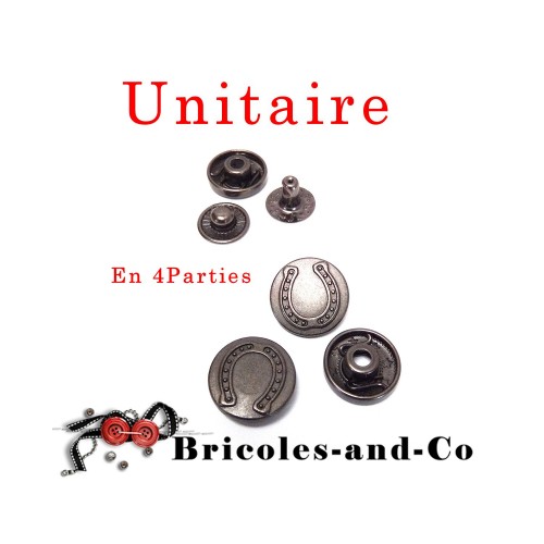 Unitaire en 4 parties : Rivet bouton rond , Bouton-pression motif fer à cheval.