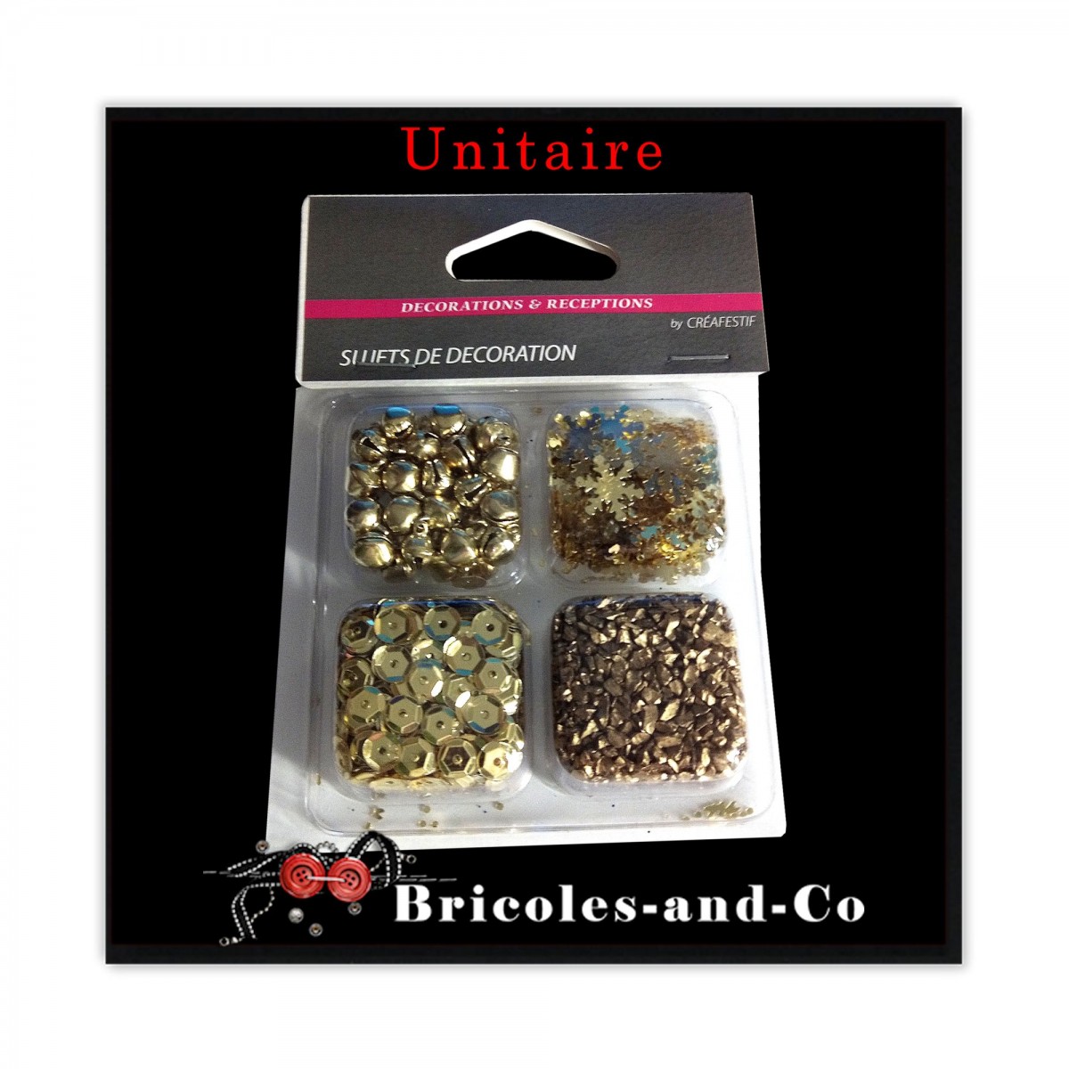 Set décoration noël, doré : Grelots, sequins, flocons et graviers, confettis de table. Pour toute vos créations de Noël.