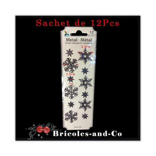 Set décoration noël, sticker métal flocon, planche autocollant, argenté .Unitaire en 12Pcs.